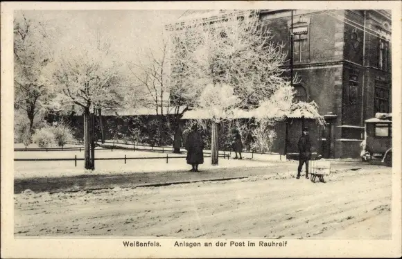 Ak Weißenfels im Burgenlandkreis, Anlagen an der Post im Rauhreif
