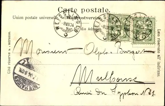 Zustand, siehe Scan, gelaufen, 1904 - ca 14 cm X 9 cm