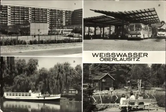 Ak Weißwasser in der Oberlausitz, Wohnkomplex am Wasserturm, Leninring, Busbahnhof, Tierpark