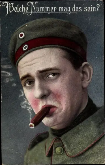 Ak Welche Nummer mag das sein, Soldat mit Zigarre