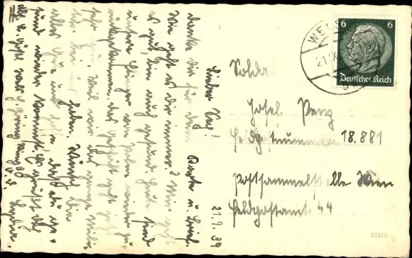 Zustand, siehe Scan, gelaufen, 1939 - ca 14 cm X 9 cm