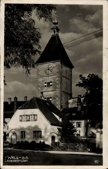 Ak Wels in Oberösterreich, Ledererturm, Turmuhr