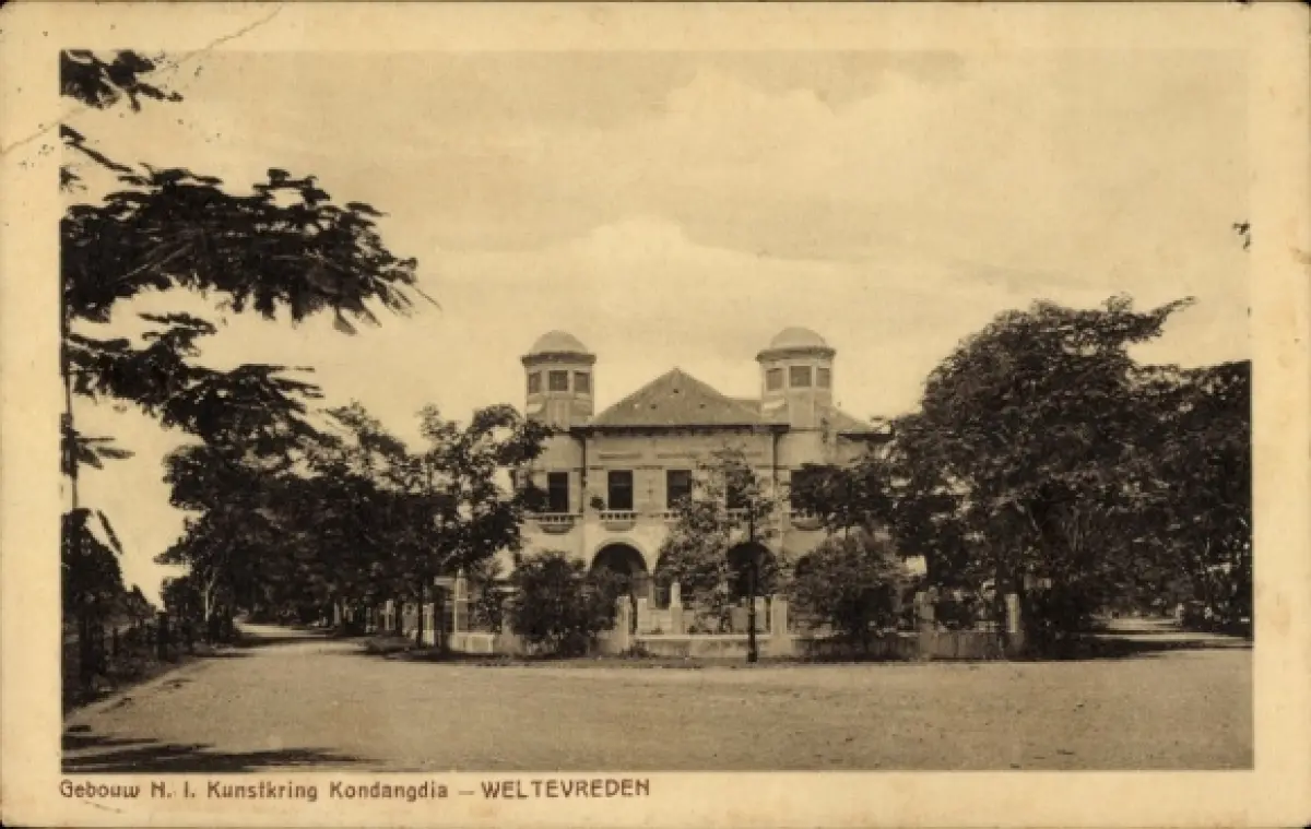 Ak Weltevreden Batavia Jakarta Indonesien, Gebouw N. I. Kunstkring Kondangdia, WELTEVREDEN, mit