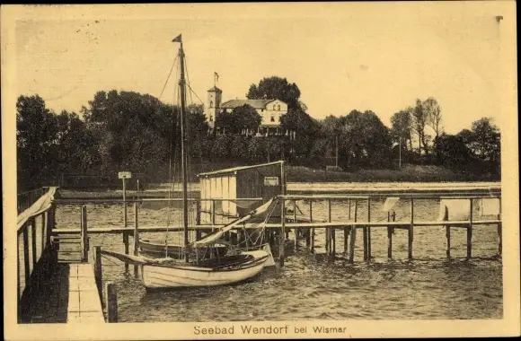 Ak Wendorf Wismar in Mecklenburg, Seebad, Steg, Boot