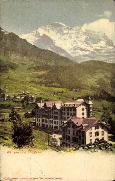 Ak Wengen Kanton Bern, Teilansicht mit Jungfrau
