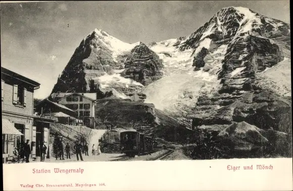 Ak Wengernalp Kanton Bern Schweiz, Bahnhof, Gleisansicht, Eiger, Mönch
