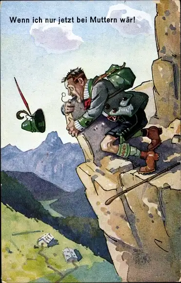 Ak Wenn ich nur jetzt bei Muttern wäre, Bergsteiger verliert Mütze
