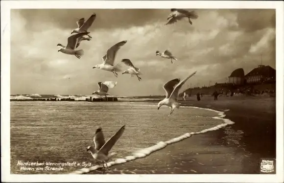 Ak Wenningstedt auf Sylt, Möwen am Strand