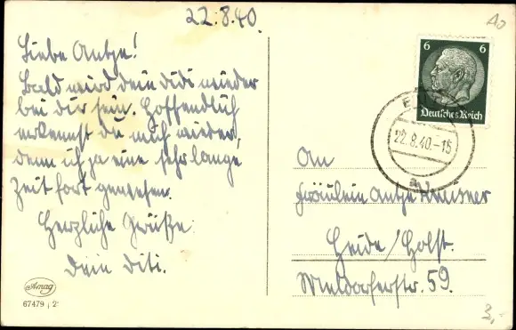 Zustand, siehe Scan, gelaufen, 1940 - ca 9 cm X 14 cm