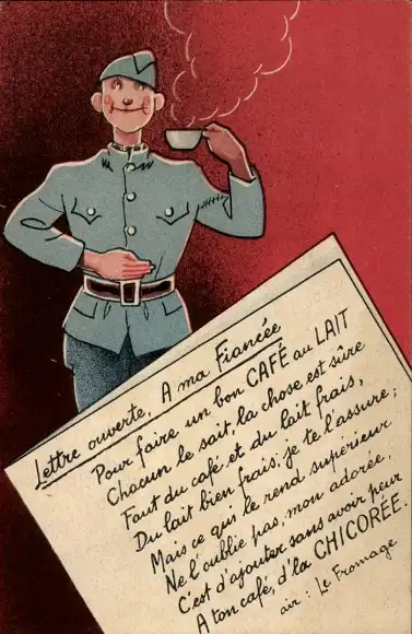 Ak Werbung, Soldat trinkt Kaffee Chicoree