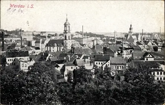 Ak Werdau an der Pleiße in Sachsen, Totalansicht von der Stadt