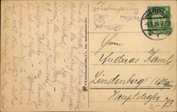 Zustand, siehe Scan, gelaufen, 1924 - ca 14 cm X 9 cm