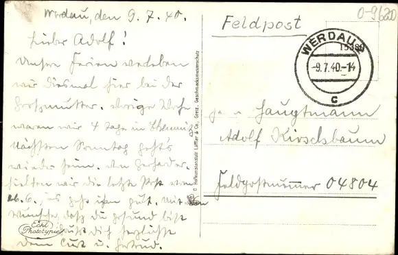 Zustand, siehe Scan, gelaufen, 1940 - ca 15 cm X 9 cm