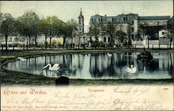 Ak Werdau in Sachsen, Königsplatz, Teich