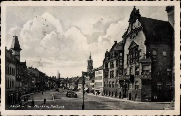 Ak Werdau in Sachsen, Markt mit Rathaus