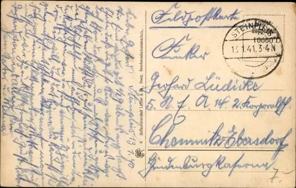 Zustand, siehe Scan, gelaufen, 1941 - ca 14 cm X 9 cm