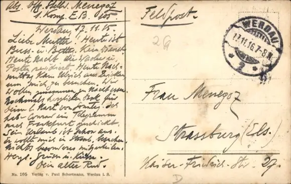 Zustand, siehe Scan, gelaufen, 1916 - ca 14 cm X 9 cm