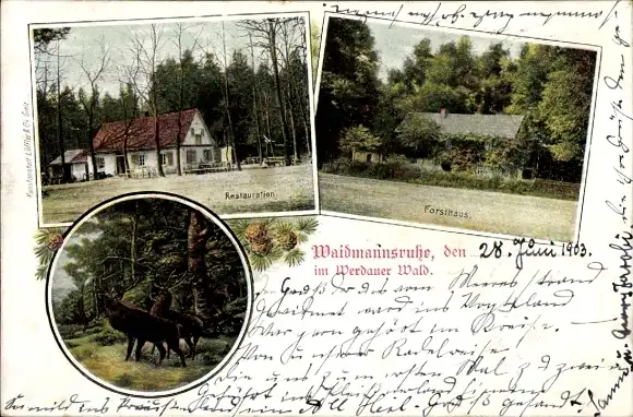 Ak Werdau in Sachsen, Waidmannsruhe im Werdauer Wald, Forsthaus, Restaurant