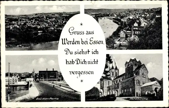 Ak Werden Essen im Ruhrgebiet, Totalansicht, Brücke, Abteikirche