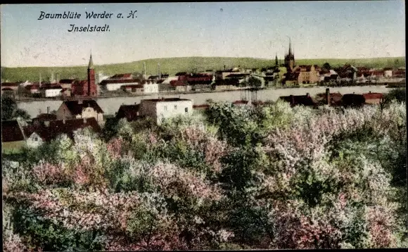 Ak Werder an der Havel, Baumblüte auf der Inselstadt, Teilansicht