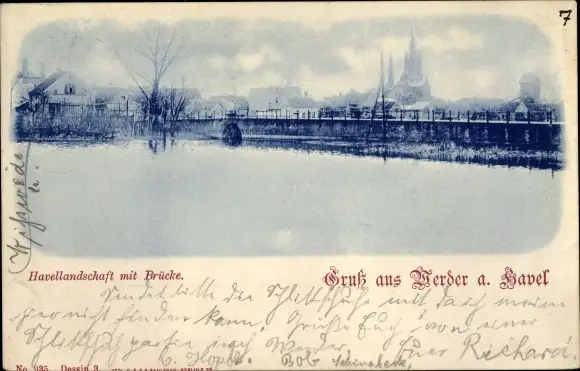 Ak Werder an der Havel, Havellandschaft mit Brücke