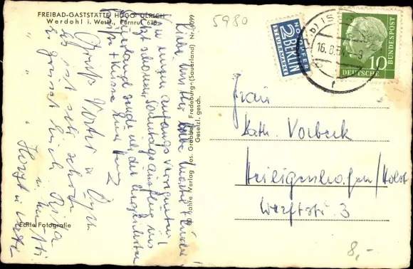 Zustand, siehe Scan, gelaufen, 1954 - ca 14 cm X 9 cm