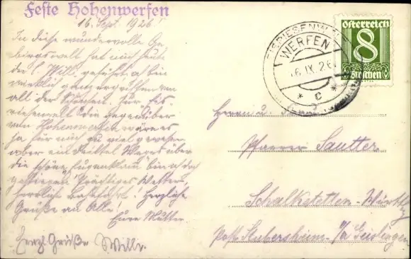 Zustand, siehe Scan, gelaufen, 1926 - ca 14 cm X 9 cm