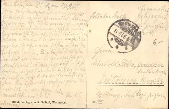 Zustand, siehe Scan, gelaufen, 1908 - ca 14 cm X 9 cm