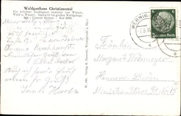 Ak Wernigerode, Waldgasthaus Cristianenthal, C. Richter