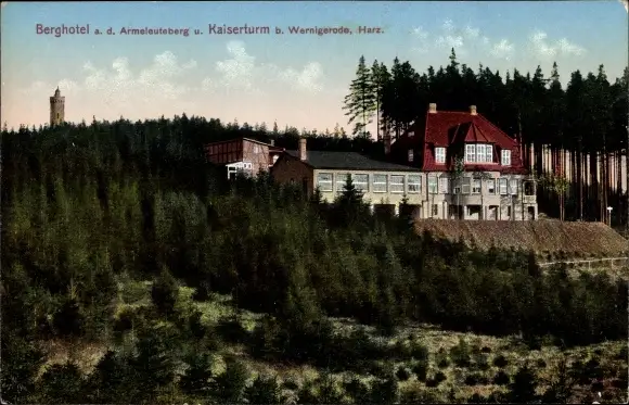 Ak Wernigerode am Harz, Berghotel auf dem Armeleuteberg, Kaiserturm