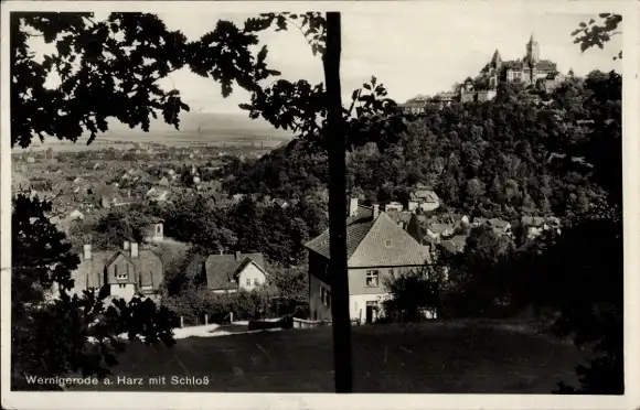 Ak Wernigerode am Harz, Blick auf den Ort und das Schloss