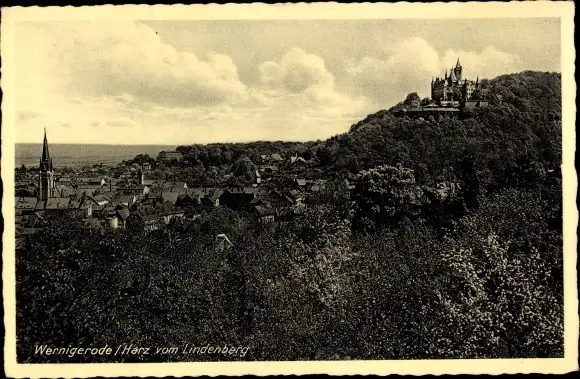 Ak Wernigerode am Harz, Panorama, vom Lindenberg gesehen, Schloss, Kirche