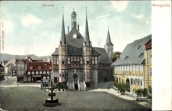 Ak Wernigerode am Harz, Rathaus, Außenansicht, Brunnen