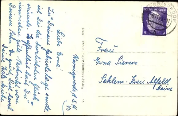Zustand, siehe Scan, gelaufen, 1943 - ca 14 cm X 9 cm