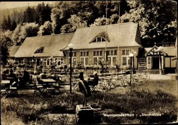 Ak Wernigerode am Harz, Storchmühle, Restaurant, Außenansicht, Terrasse