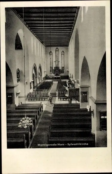 Ak Wernigerode am Harz, Sylvestrikirche, Innenansicht, Kanzel, Altar