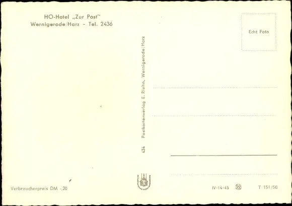 Ak Wernigerode im Harz, HO-Hotel Zur Post, Restaurant
