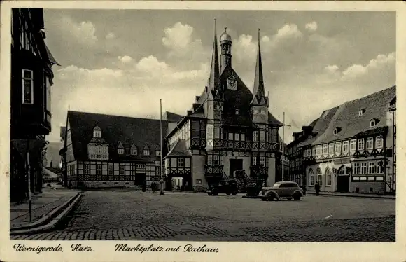 Ak Wernigerode im Harz, Marktplatz mit Rathaus