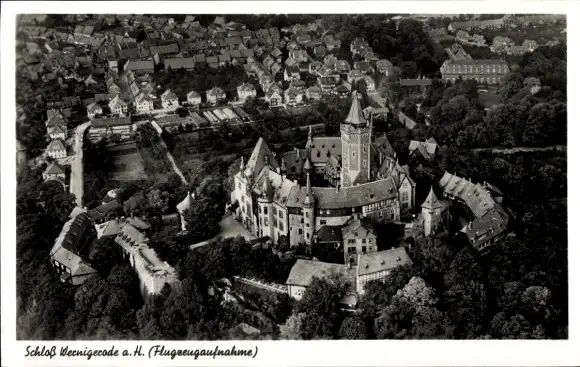 Ak Wernigerode im Harz, Schloss Wernigerode, Fliegeraufnahme