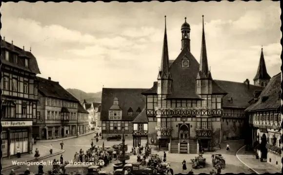 Ak Wernigerode im Harz, Wochenmarkt, Rathaus