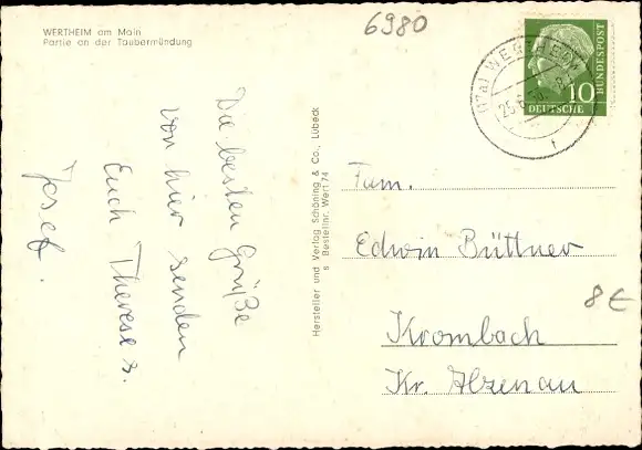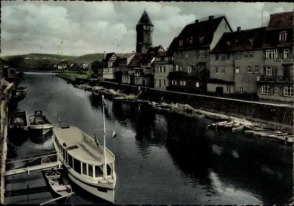 Ak Wertheim am Main, Taubermündung,Turm, Boote