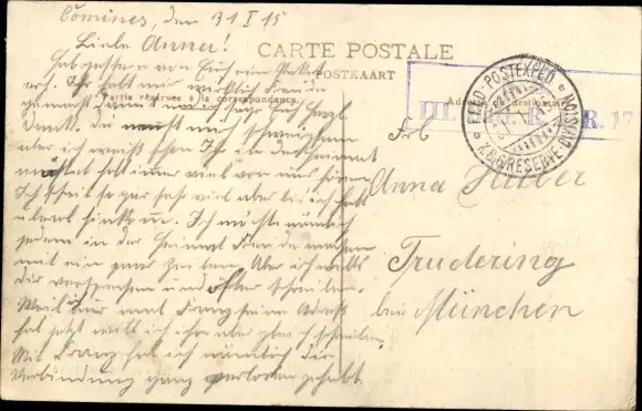 Zustand, siehe Scan, gelaufen, 1915 - ca 14 cm X 9 cm
