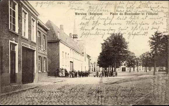 Ak Wervik Wervicq Westflandern, Place du Steenacker et l'Hopital