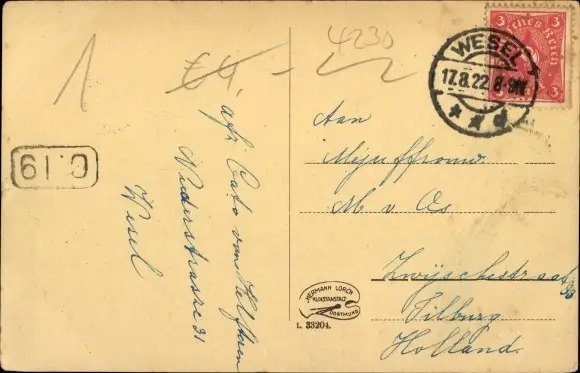 Zustand, siehe Scan, gelaufen, 1922 - ca 14 cm X 9 cm