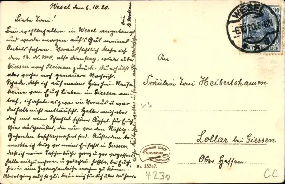Zustand, siehe Scan, gelaufen, 1920 - ca 14 cm X 9 cm