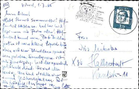 Zustand, siehe Scan, gelaufen, 1965 - ca 14 cm X 9 cm