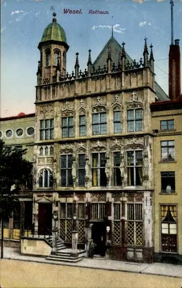 Ak Wesel am Niederrhein, Gesamtansicht vom Rathaus