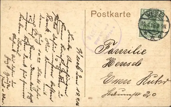 Zustand, siehe Scan, gelaufen, 1916 - ca 14 cm X 9 cm