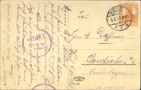 Zustand, siehe Scan, gelaufen, 1917 - ca 9 cm X 14 cm