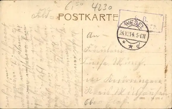 Zustand, siehe Scan, gelaufen, 1914 - ca 9 cm X 14 cm